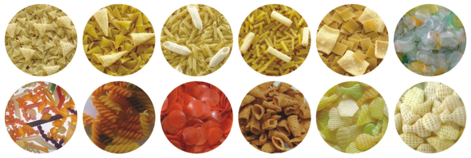 3. 产品: 贝壳、螺旋、方管、圆管、藕片等不同形状油炸休闲小食品
