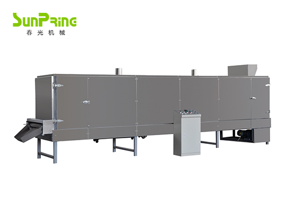 组织蛋白加工设备是我公司根据国内外市场的需求,根据多年的挤压膨化技术,向市场推出的一种生产高蛋白、高纤维的膨化设备。组织蛋白生产线以低温豆粕、花生粕为主要原料,经粉磨、搅拌、调质、高温、高压、高剪切,将球形蛋白质分子打开成链状并重新组织化,形成如肉状纤维结构的新型食品;其产品营养价值高,具有肉的状态和口感,不含胆固醇和动物脂肪,具有吸油、吸水、吸味的特点;广泛用于火腿、香肠、罐头快餐及速冻食品等各类行业