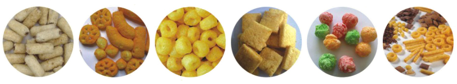 3. 产品: 各种形状玉米膨化休闲小食品